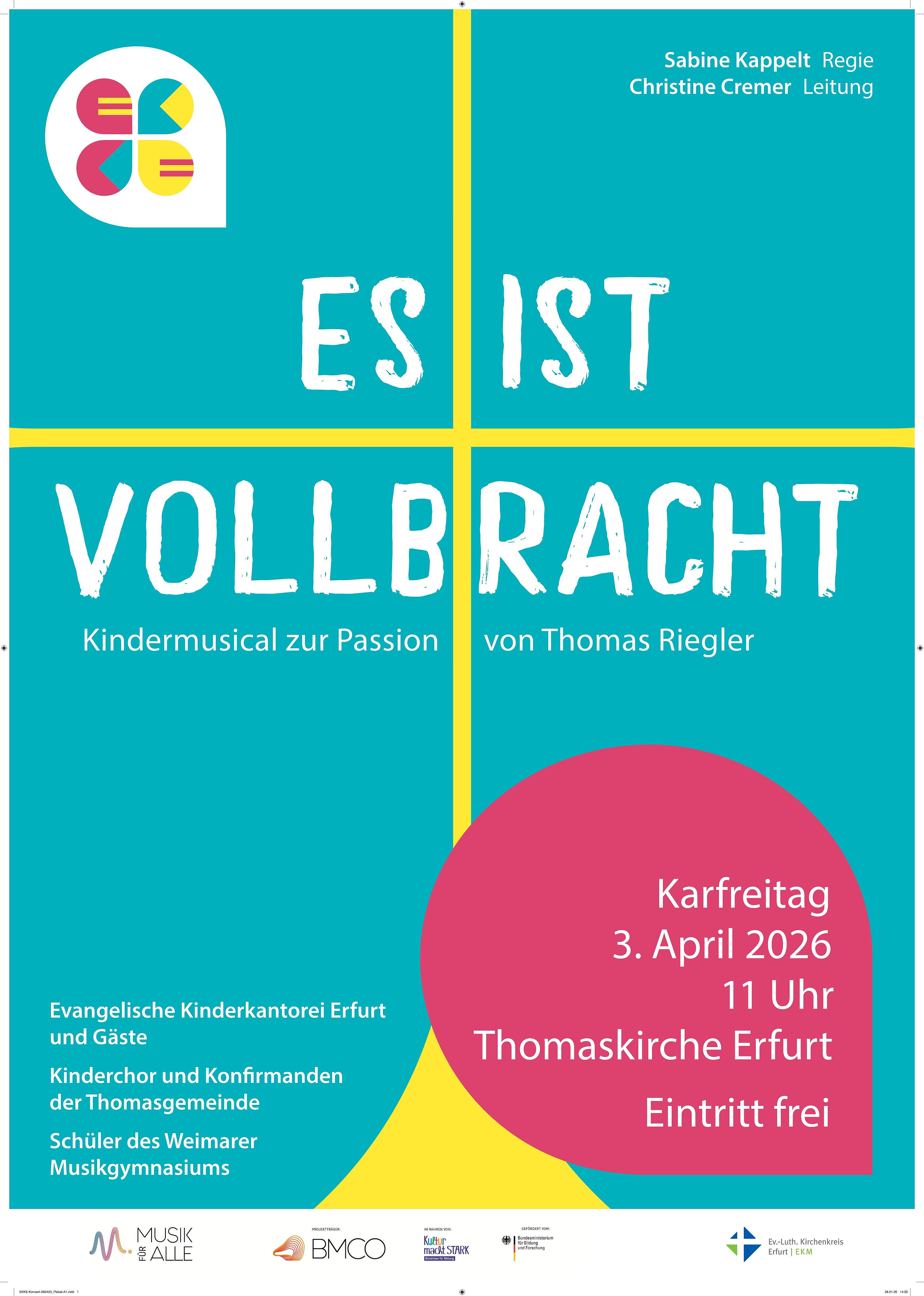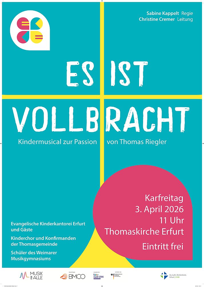 | Dienstag, 24. März | 15:30 | Kinderchor Klasse 1-6 | Gemeindesaal Puschkinstraße 11 |