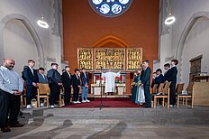 Das Abendmahl wurde während des Anspiels gemeinsam gefeiert und war in die Darstellung eingebunden.