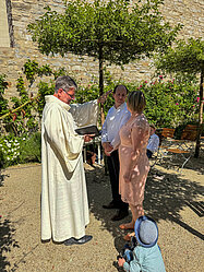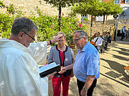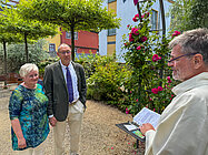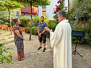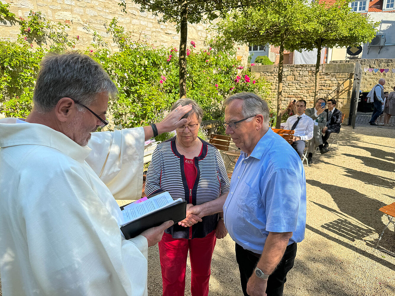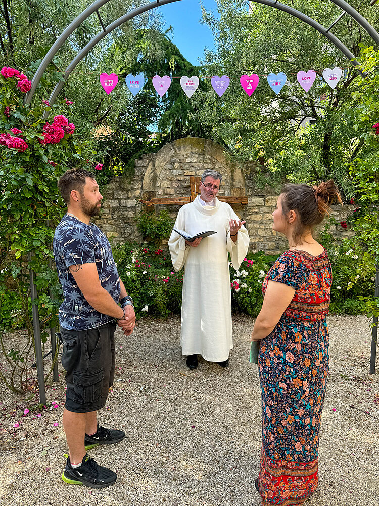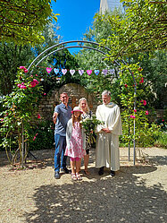 In einer kurzen, aber herzerfrischenden Zeremonie wurden am Sonntag, dem 9. Juni, nachmittags in der Rosenkirche des Evangelischen Augustinerklosters Erfurt Paare gesegnet, die in den vergangenen Jahren geheiratet haben, aber noch nicht kirchlich getraut sind. Dies kann verschiedene Gründe haben, beispielsweise die Corona-Pandemie oder die Scheu vor dem Aufwand für eine Hochzeit.