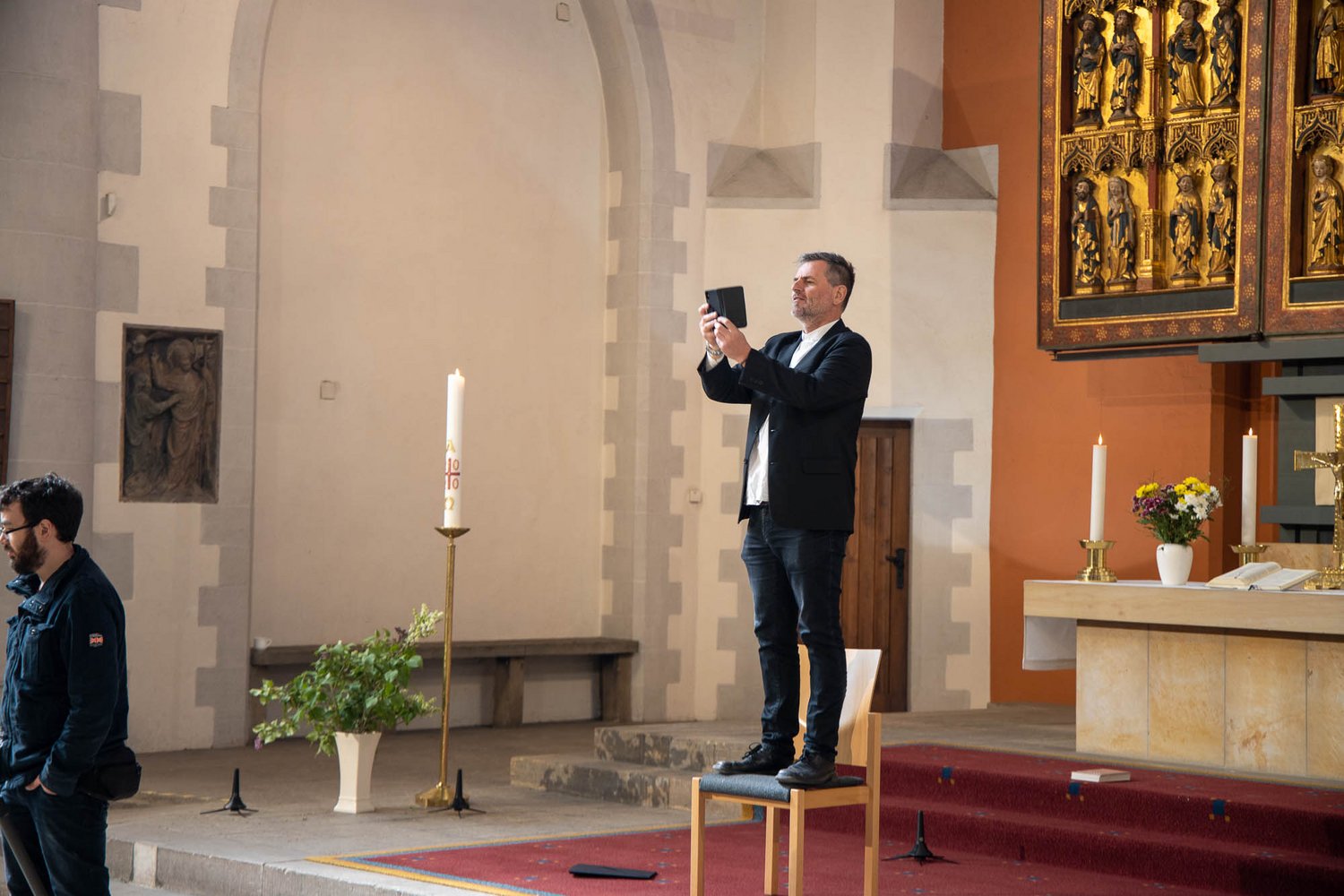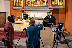 Am 24. April 2020 wurde wieder ein Video gedreht, welches am Sonntag den 26.04.2020 gezeigt werden soll. Diese Arbeiten waren notwendig, da die Corona-Pandemie Gottesdienst in einem größeren Rahmen nicht zulässt. Auf diese Weise wollen wir aber für unsere Gemeindeglieder, sowie allen Interessierten darüber hinaus, einen schönen Gottesdienst durchführen. Freuen Sie sich auf Sonntag den 26.04. um 10.00 Uhr hier auf unserer Website: www.thomasgemeinde-erfurt.de/veranstaltungen/podcast oder auf unserem YouTube Kanal, den Sie übrigens auch abonnieren können.